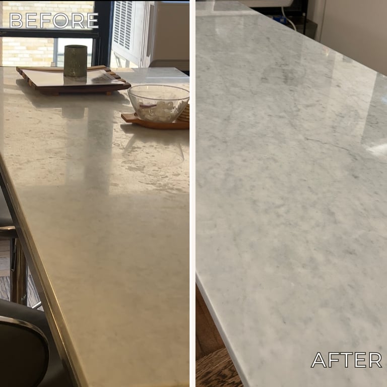 Customized treatments to reduce the visibility of stains, etching, and scratches, depending on material and depth.